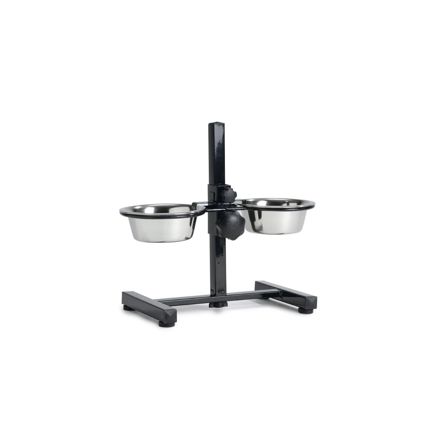 Voederstandaard zwart, met 2 RVS bakken, H-model