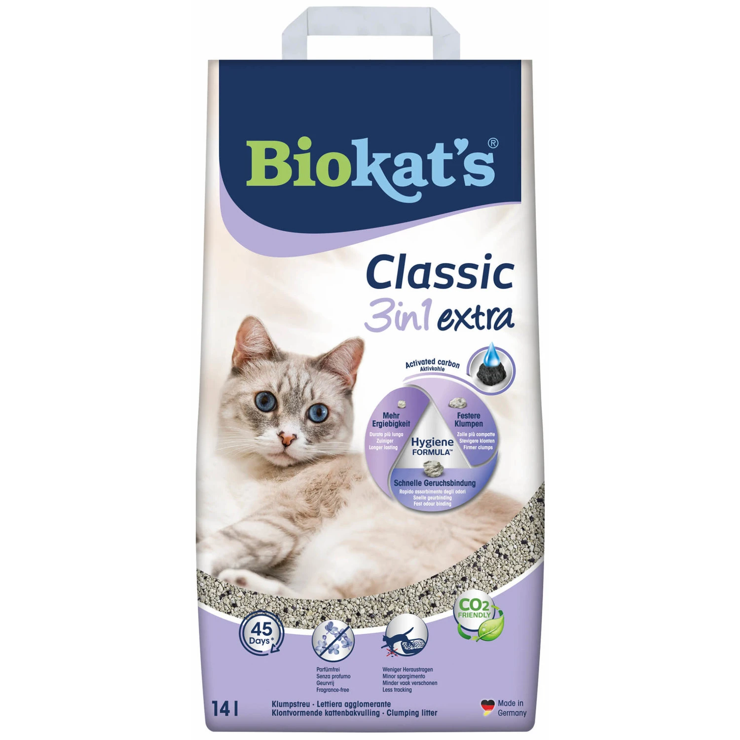 De Biokat’s Classic Extra is een kattenbakvulling met actieve kool. Actieve kool is een koolstofsubstantie die in staat is om meerdere soorten geuren tegelijk aan zich te binden. Met deze kattenbakvulling wordt voorkomen dat de geur van uitwerpselen en urine van jouw kat in het hele huis komen en op de kattenbak blijven. De kattenbakvulling is een mix van grove korrels en actieve kool. De kattenbakvulling is klontvormend en bevat geen parfum.Â