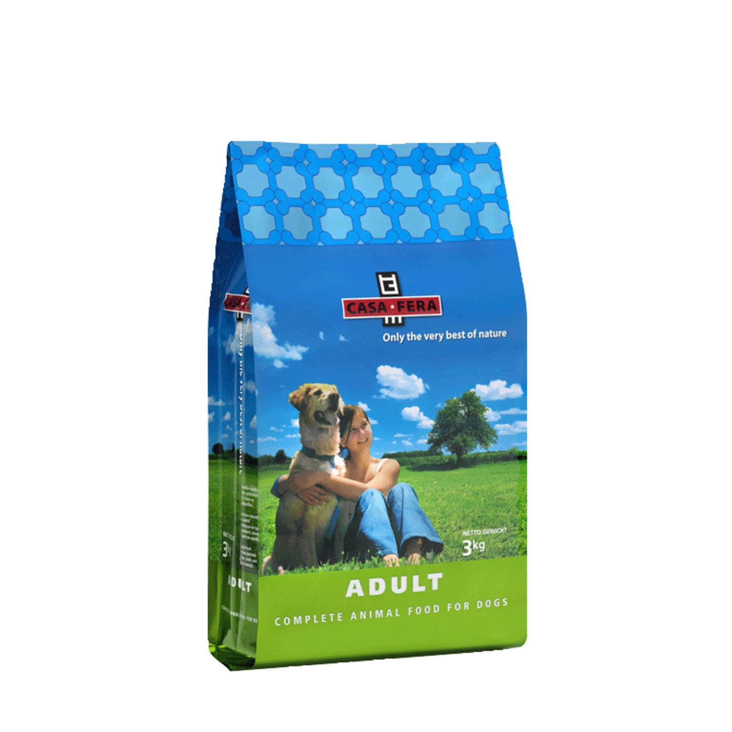 Uw hond zit in de bloei van zijn leven, geniet volop en wil leuke dingen doen, samen met u! Stimuleer uw hond hierin en ga samen met uw viervoeter naar het bos of het strand. Het optimale fosforgehalte en toegevoegde vitamine E ondersteunen de nieren, terwijl een goede bloeddruk en hartfunctie worden gestimuleerd doordat Casa-Fera Adult natriumarm is. Ook draagt het bij aan een goede huid, vacht en weerstand dankzij de toegevoegde zalmolie.