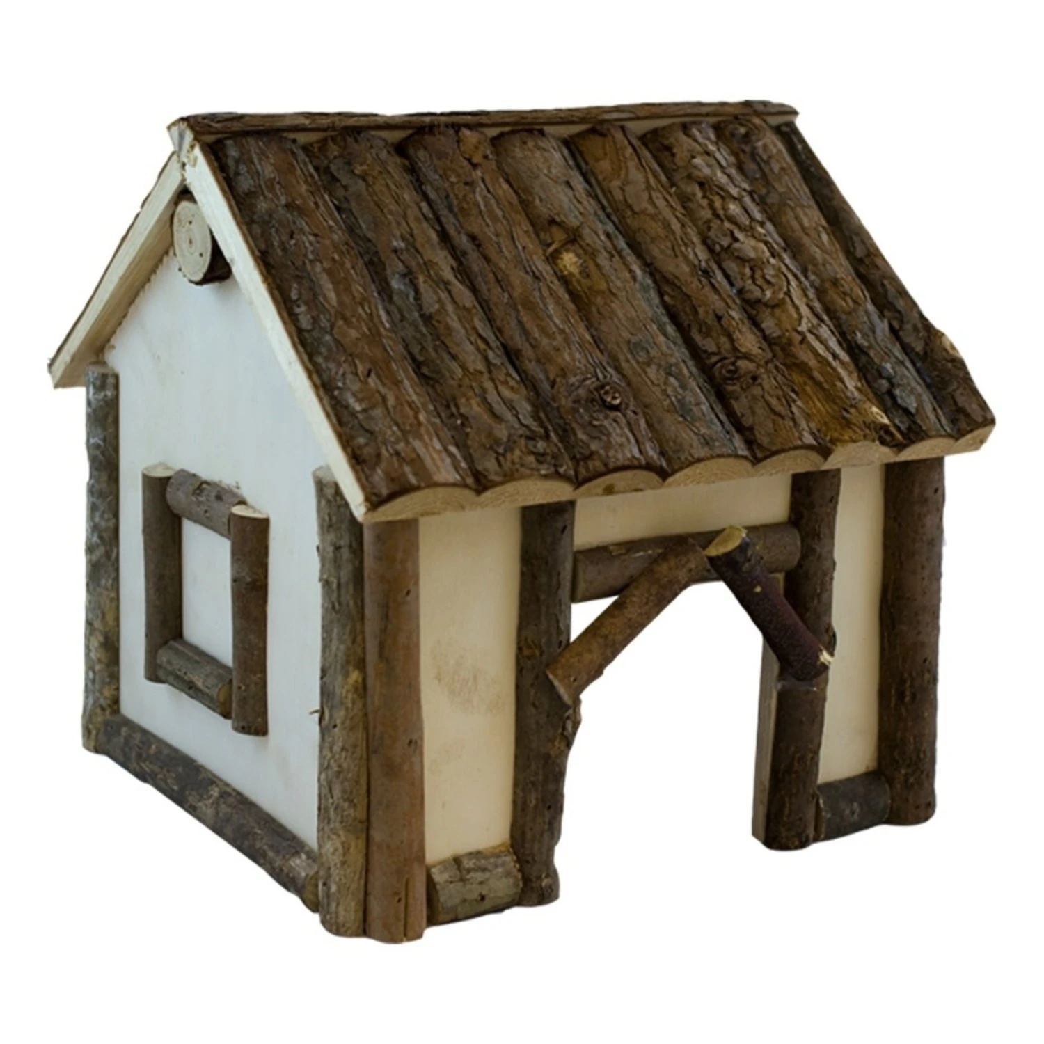 Deze prachtige, luxe, natuurlijke bos villa is geschikt voor hamsters, muizen en gerbils. Hij heeft een open bodem en een natuurlijk dak. Alles is keurig afgewerkt met hout. Het dak kan niet open en het huisje is behalve de “deur” opening en de bodem verder dicht.