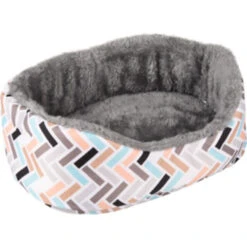 Jouw dwergkonijn, cavia, chinchilla, degoe of ratje kan heerlijk luieren en dromen wat er zo hopelijk op het menu staat aan lekkere dingen in de Mand Clavio Ovaal. De mand is ovaal zodat jouw dier zich op kan rollen en warm kan liggen. De binnenkant is voorzien van zacht pluche en de buitenkant is een gladde stof met een kleurrijk patroon. De mand is te wassen met de hand.