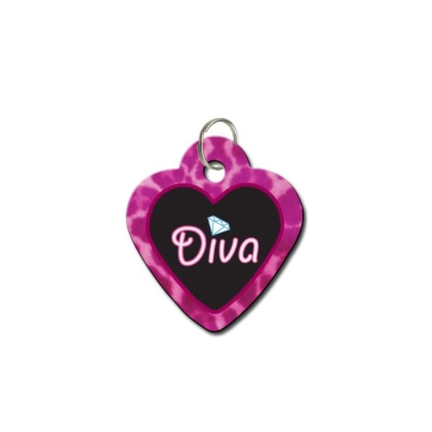 Stoere hondenpenning in hartvorm met de tekst diva erop. Op de penning kan de naam van uw huisdier of uw telefoonnummer gezet worden.