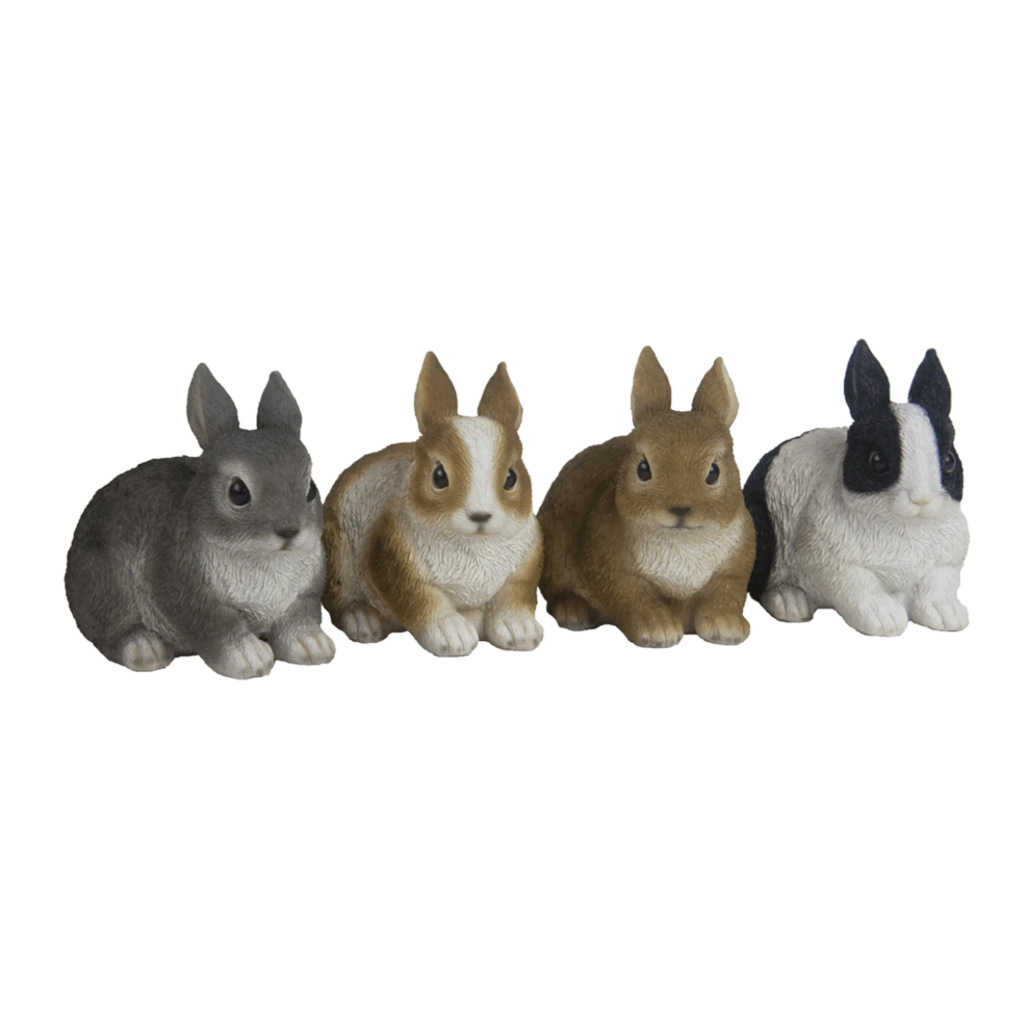 Decoratie dwergkonijnen voor in huis of in de tuin. Gemaakt van polyresin en bijna niet van echt te onderscheiden. Deze dwergkonijnen zijn beschikbaar in 4 verschillende kleuren.ย