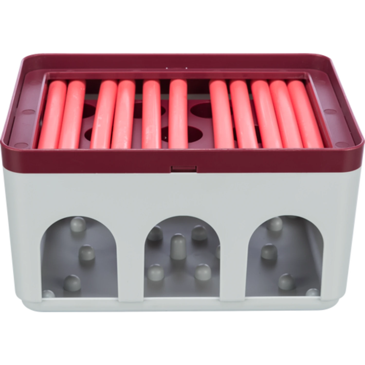 Daag jouw kat uit met de Trixie Cat Activity Rod Box! De Rod Box is een strategiespel voor katten en bestaat uit twee lagen. De bovenste laag bevat meerdere gaten waar snoepjes of brokjes in kunnen. De staafjes boven de gaten kunnen rollen. Lukt het jouw kat om de staafjes opzij te krijgen met de snuit en de brokjes te pakken te krijgen?