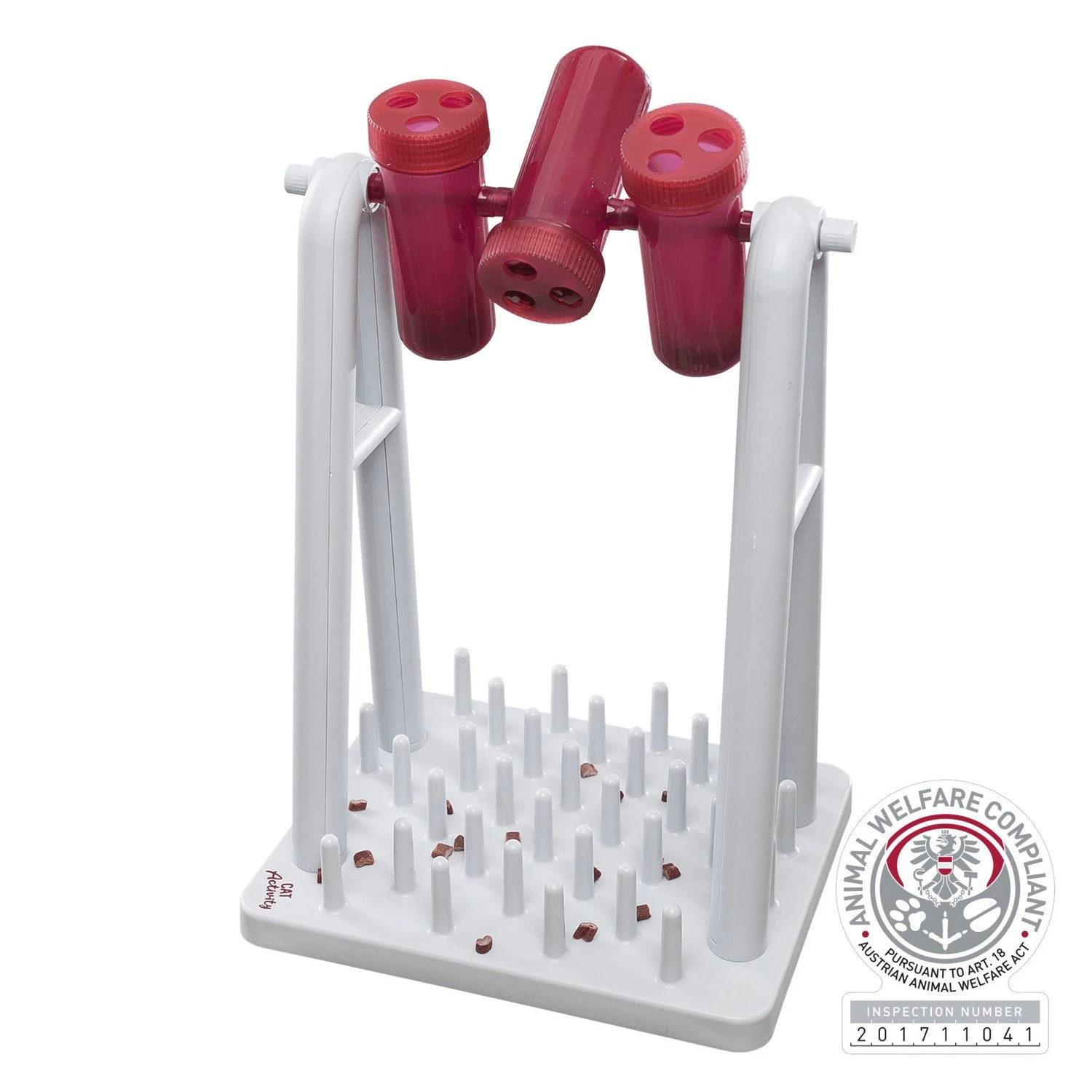 De Turn Around is een strategische kattenpuzzel in een verhoogde opstelling waarbij potjes gevuld kunnen worden om ze om te draaien voor een beloning.