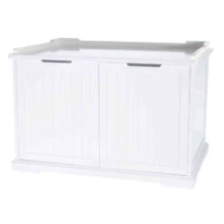 Het Trixie Kattenhuis XL Wit is een toilethuis voor de kat dat ook gebruikt kan worden als huis voor een kattenmand. Dit schattige huisje is vierkant van vorm en heeft twee deurtjes aan de voorkant voor gemakkelijk schoonmaken en een uitsparing aan de zijkant zodat uw kat erin en eruit kan. Het huisje is gemaakt van wit gelakt MDF en speciaal ontworpen om een kattenbak in op te bergen, maar kan ook worden gebruikt als decoratief slaaphuisje, bijvoorbeeld door er een mandje in te plaatsen. Ventilatiegaten in de achterwand zorgen voor een goede luchtcirculatie binnenin en het deurtje sluit met een magneetsluiting. De mat zorgt ervoor dat al het afval binnen blijft. Een multifunctioneel huis dat uw kat een eigen plekje in huis geeft!